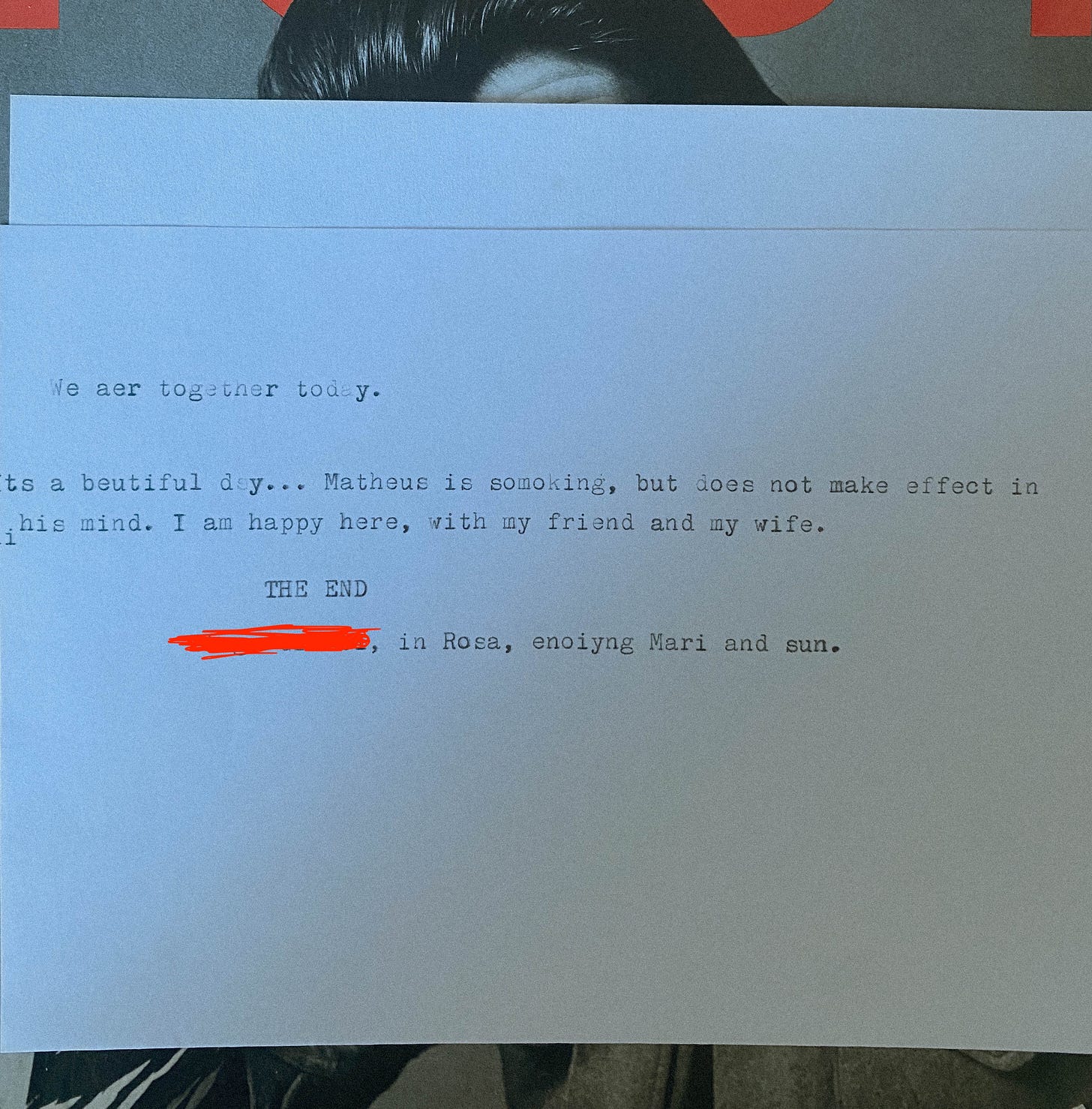 2026 começa e alugo uma cabana no Rio Tavares, em Florianópolis, por uma semana. Preciso de um lugar bacana para gravar uns vídeos. Recupero a máquina de escrever na casa dos meus pais, em Imbituba, para usar como decoração. Dentro da capa protetora da máquina, a revista com Alex Turner na capa. Dentro da revista, uma carta escrita pelo Amigo Startupeiro cuja existência eu não recordava.