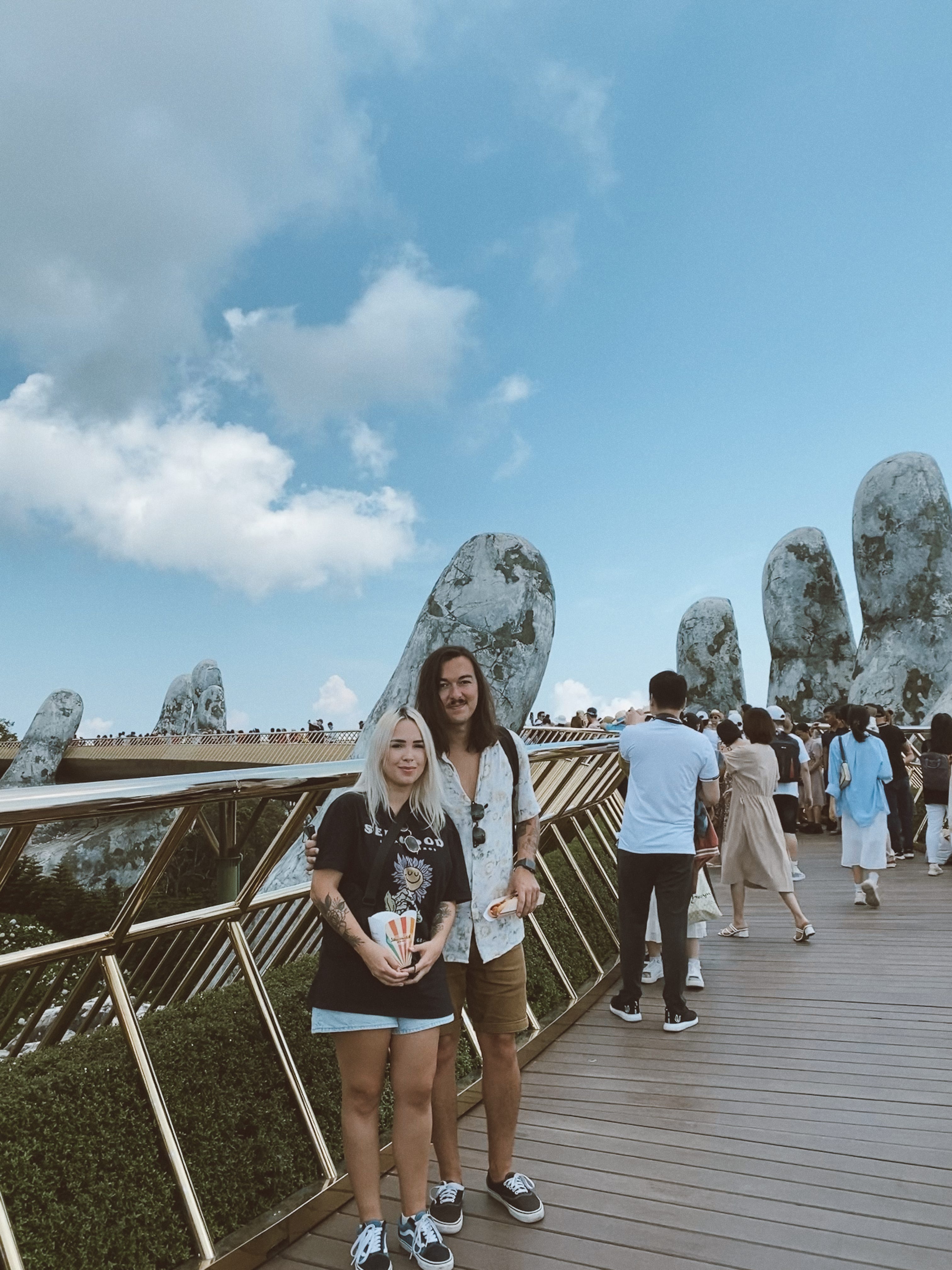 Quando você pesquisa no Google por “da nang vietnã” as primeiras imagens que aparecem são de uma ponte sustentada por duas esculturas no formato de mãos que devem, você imagina, estar ali há anos, talvez séculos, dado a sua aparência; os musgos, as rachaduras. Foram essas imagens em blogs e perfis no Instagram que levaram I. e eu, em uma manhã de uma segunda-feira qualquer, até Ba Na Hills.